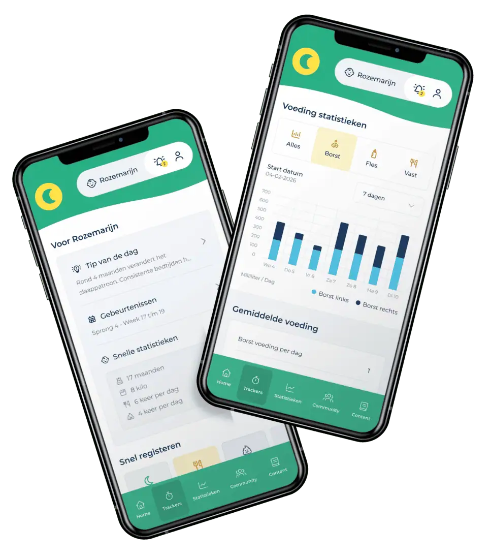 De gratis app die ouders en kindjes ondersteunt in meer (nacht)rust. Met de uitgebreide trackers houd je gemakkelijk de slaapjes, voedingen, verschoningen, gewicht en temperatuur van je kindje(s) bij. Daarnaast stuurt de app, aan de hand van wetenschap, data en algoritmes actief op het slaap- en voedingsritme dat past bij jouw kindje.